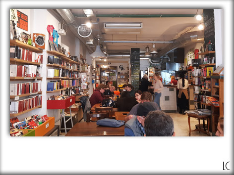 Sin embargo, l’Ubik Café è apparentemente un perfetto caffè letterario, con una lunga parete piena zeppa di libri, ben ordinati in mensole o in cassettine colorate. In realtà, facendo attenzione ai cartelli che ti pregano gentilmente di non toccare i libri e ti segnalano i super sconti su tanti titoli, capisci che si tratta effettivamente di una Caffetteria + Libreria, per cui i libri puoi toccarli solo se intendi acquistarli.
